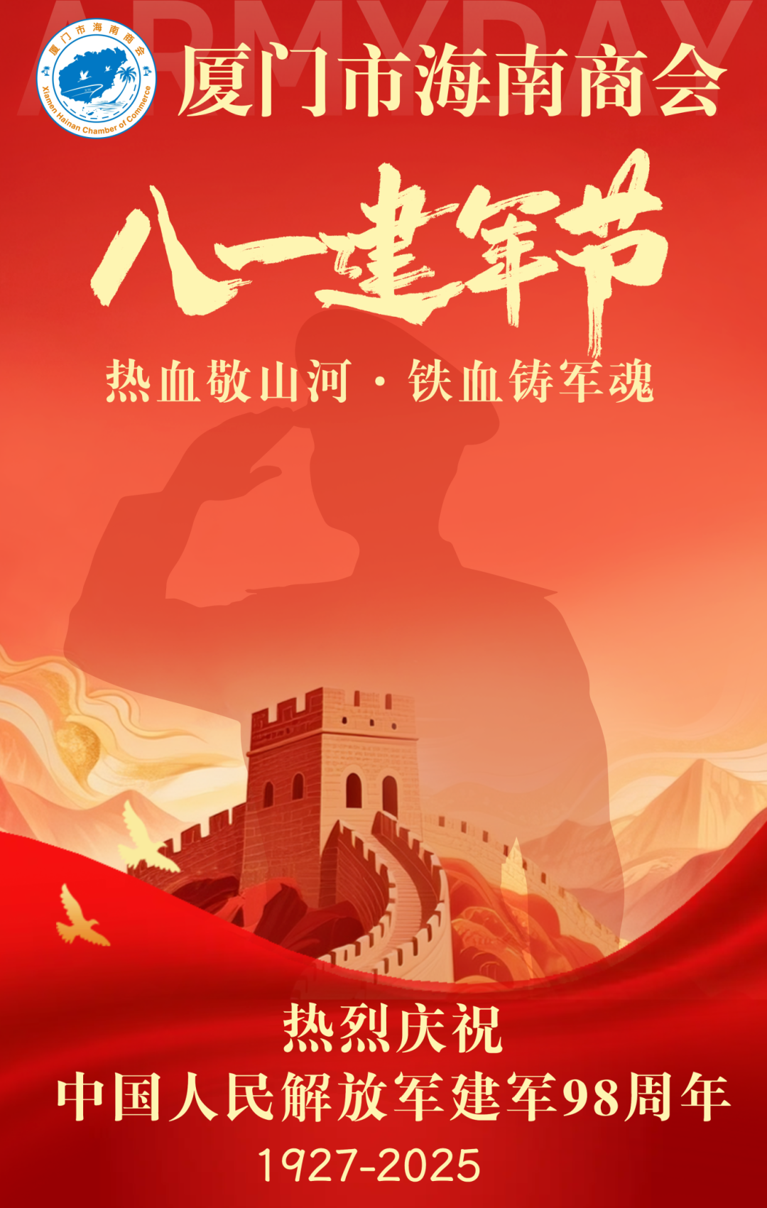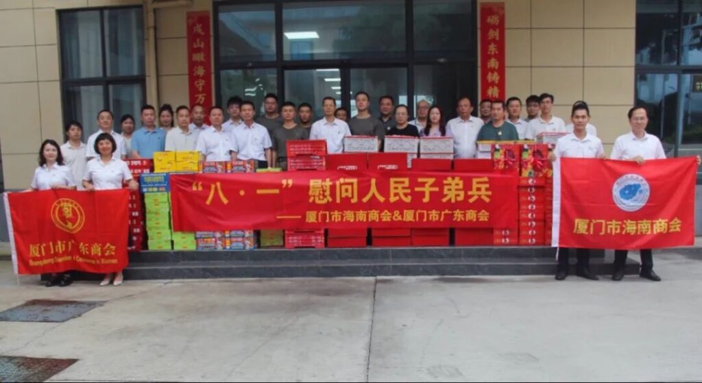 8月3日,为庆祝中国人民解放军建军98周年暨纪念抗日战争胜利80周年,厦门市海南商会联合厦门市广东商会共同慰问中国人民解放军厦门某部官兵。两会领导班子及党支部带领部分企业家会员、党员参加,厦门市工商联经济联络部骆小兰部长亲临指导。