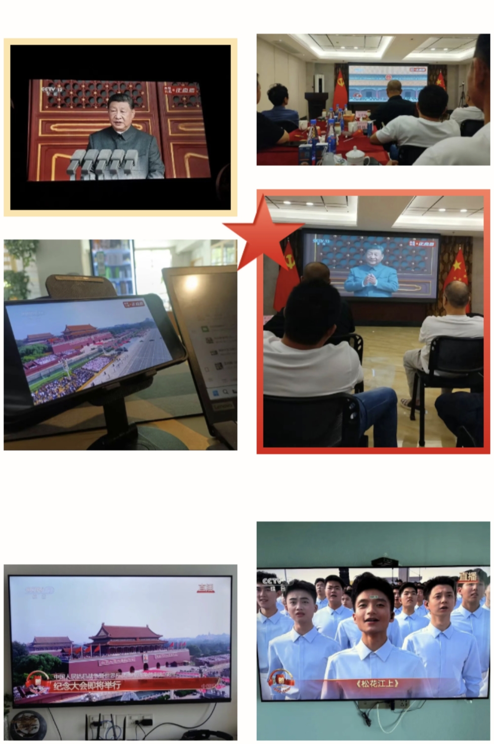 9月3日上午,商会会员和党员们在商会的号召下,怀着无比激动的心情,在各自单位或岗位上或家中在线收看了这场展现国家力量的盛大庆典。